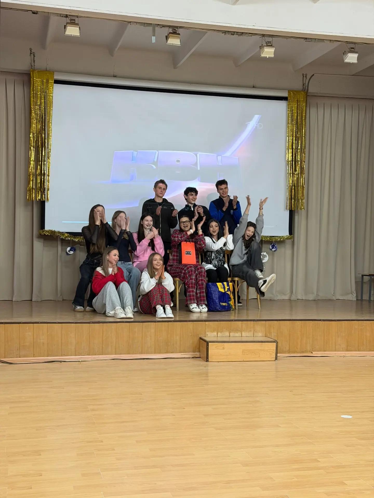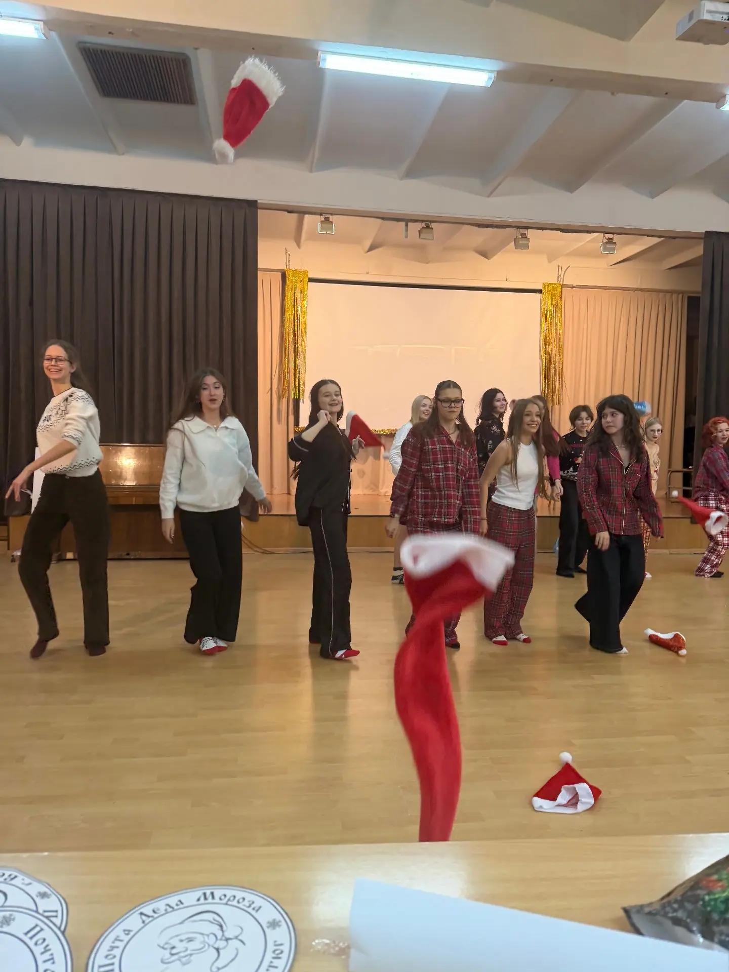 🛑29.12.2026 три команды — 10А+10В, 10Б+10Г и учителя — сразились в визитке, новогоднем гадании, песенном конкурсе и «Сказке по-новому».